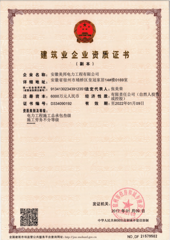 安徽美邦電力工程有限公司成立于2015年6月,坐落于宿州高新區(qū)。是一家從事電力工程設計、電力設備生產(chǎn)、電力工程施工、電力托管服務、電力工程搶險為一體的一站式綜合性公司。公司現(xiàn)有各類專業(yè)技術職稱的管理人員及大批從事電力工程專業(yè)施…